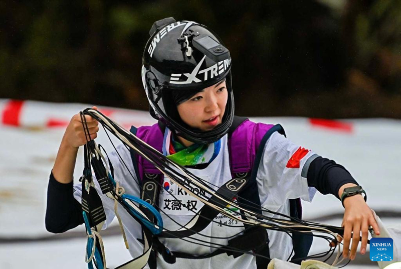 | ไอวี่ ควอน นักกระโดดชาวเกาหลีใต้ เข้าร่วมการแข่งขันกีฬาเอ็กซ์ตรีมบริดจ์ระดับนานาชาติ ประจำปี 2568 ที่มณฑลกุ้ยโจว ทางตะวันตกเฉียงใต้ของจีน เมื่อวันที่ 26 กันยายน 2568 (ซินหัว) |