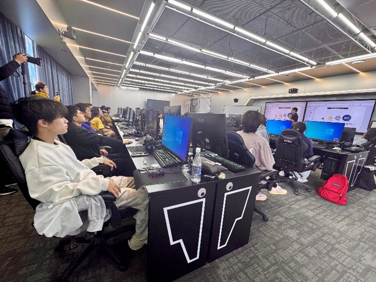 ภายในห้องเรียนวิชาการผลิตสื่อด้วยดิจิทัลและเอไอ ณ เขตนำร่องนวัตกรรมการศึกษาไห่หนานหลิงสุ่ยหลีอัน มณฑล