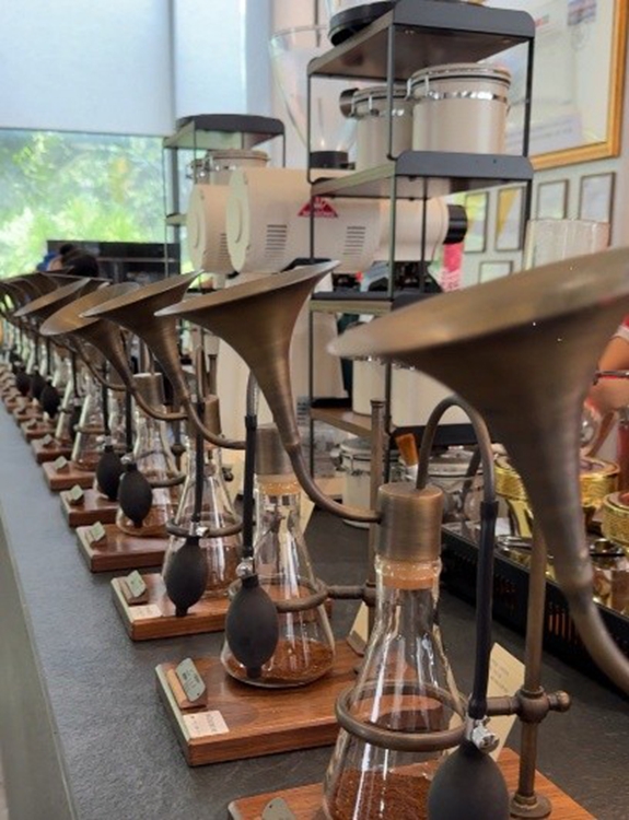 ภายในร้านกาแฟ ณ สวนอุตสาหกรรมซีพี-กาแฟซิงหลงที่เมืองว่านหนิง มณฑลไห่หนาน