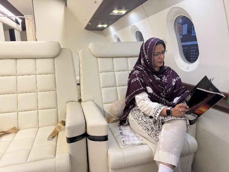 ผู้เชี่ยวชาญชาวปากีสถานจาก People's Daily Online นั่งในห้องโดยสารชั้นเฟิร์สคลาสที่ฐานถ่ายทำภาพยนตร์และ