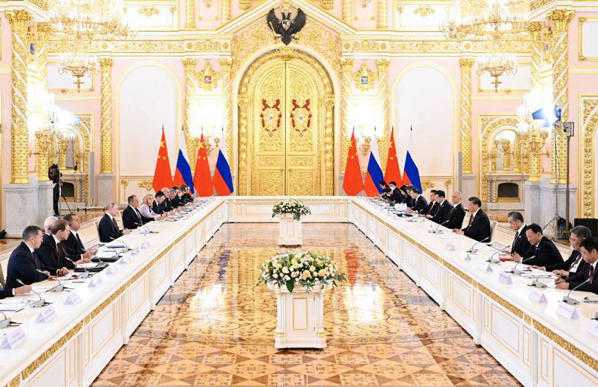 จ้าว เล่อจี้ ประธานคณะกรรมการประจำสภาผู้แทนประชาชนแห่งชาติจีนหารือกับโฆษกรัฐบาลสโลวาเกีย