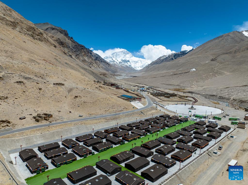 | ภาพถ่ายเมื่อวันที่ 20 พ.ค. 2566 แคมป์ฐานสำหรับนักท่องเที่ยวในเขตอนุรักษ์ธรรมชาติแห่งชาติจูมู่หลังหม่า (ซินหัว/ซุน เฟย) |