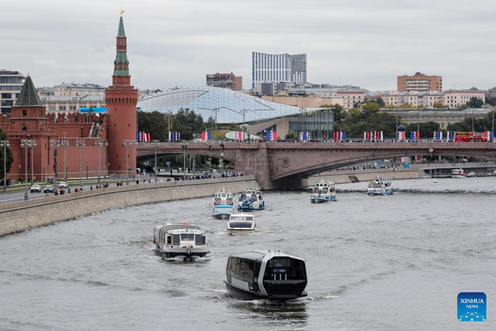 | เรือต่างๆ เข้าร่วมในขบวนพาเหรดเฉลิมฉลองวันเมืองมอสโกที่กรุงมอสโก ประเทศรัสเซีย เมื่อวันที่ 9 กันยายน พ.ศ. 2566 มีการจัดกิจกรรมมากมายในช่วงสุดสัปดาห์เพื่อเฉลิมฉลองวันเมืองมอสโก และเพื่อฉลองกรุงมอสโกครบรอบ 876 ปี (ซินหัว) |