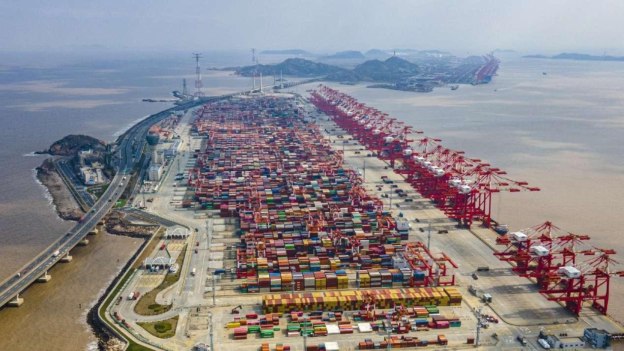 เทอร์มินัลตู้คอนเทนเนอร์อัตโนมัติ เฟสที่ 4 ที่ท่าเรือน้ำลึกหยางซานของนครเซี่ยงไฮ้ (ภาพโดยหวาง ชู/พีเพิลส์