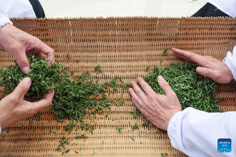 | พนักงานกำลังปรุงใบชาจี่ว์เหยียนที่บริษัทชาแห่งหนึ่งในเมืองจินหัว มณฑลเจ้อเจียง ทางตะวันออกของจีน เมื่อวันที่ 31 มีนาคม 2568 (ซินหัว) |