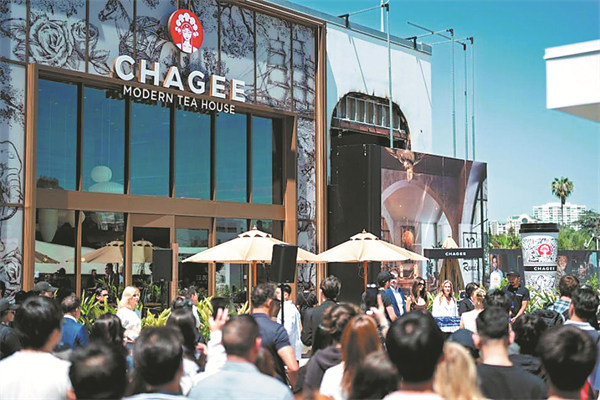 ลูกค้าแห่กันไปซื้อเครื่องดื่ม Chagee ในวันเปิดร้านสาขาแรกในสหรัฐอเมริกา ที่ลอสแอนเจลิส