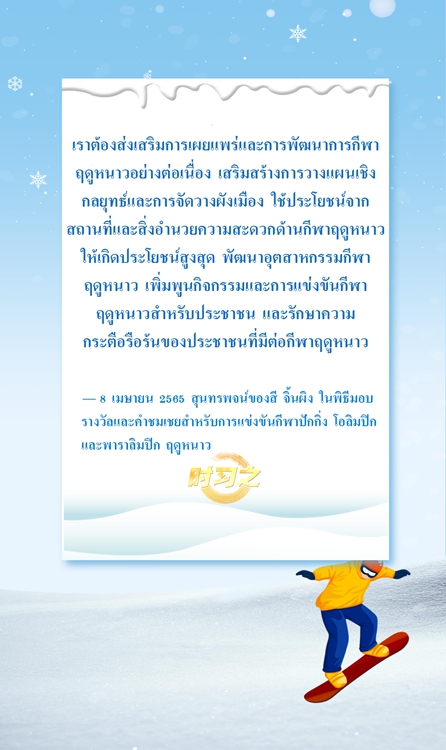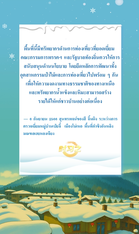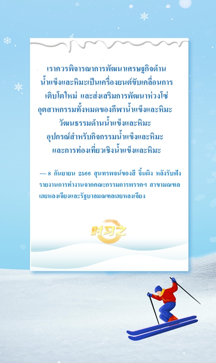 เมื่อฤดูท่องเที่ยวเชิงน้ำแข็งและหิมะมาถึง สถานที่หลายแห่งจึงใช้ประโยชน์จากทรัพยากรด้านการท่องเที่ยวเกี่ยวกับน้ำแข็งและหิมะที่มีอยู่อย่างอุดมสมบูรณ์ เพื่อจัดกิจกรรมทางวัฒนธรรมและกีฬาที่น่าตื่นเต้นและน่าสนใจ ดึงดูดนักท่องเที่ยวให้มาสัมผัสประสบการณ์กีฬาบนน้ำแข็งและหิมะ และเพลิดเพลินกับทิวทัศน์ที่สวยงาม ซึ่งจะช่วยกระตุ้นการพัฒนาเศรษฐกิจด้านน้ำแข็งและหิมะ