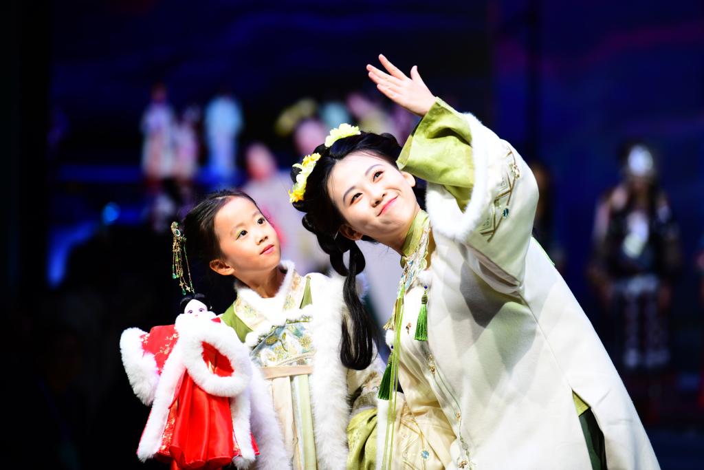 นางแบบโพสท่าถ่ายรูปในงานเปิดตัวคอลเลกชันฤดูใบไม้ร่วง/ฤดูหนาวปี 2025 ระหว่างงานเทศกาลวัฒนธรรมฮั่นฝูเฉาเซี่ยน ครั้งที่ 4