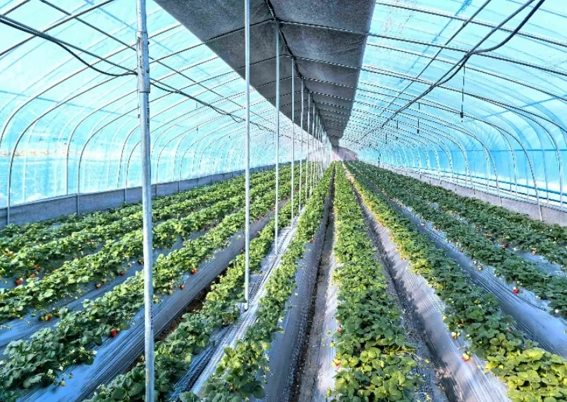 โรงเรือนอัจฉริยะเพาะปลูกสตรอว์เบอร์รีสีเข้มชนิดหนึ่ง หรือที่เรียกว่า “สตรอว์เบอร์รีดำ” ในตำบลซินเตี้ยน เมืองลั่วเหอ