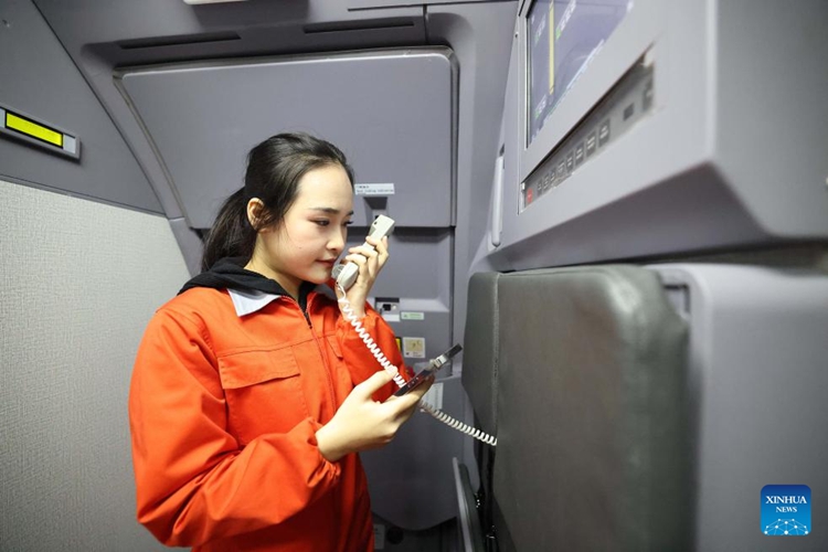 | ญาณัจฉรา อนุกูล นักศึกษาฝึกหัดพนักงานต้อนรับบนเครื่องบินจากประเทศไทย กำลังปฏิบัติงานในห้องโดยสารจำลอง ณ มหาวิทยาลัยการบินพลเรือนแห่งประเทศจีน (CAUC) ในเมืองเทียนจิน ทางตอนเหนือของประเทศจีน เมื่อวันที่ 20 มกราคม 2569 (ซินหัว) |