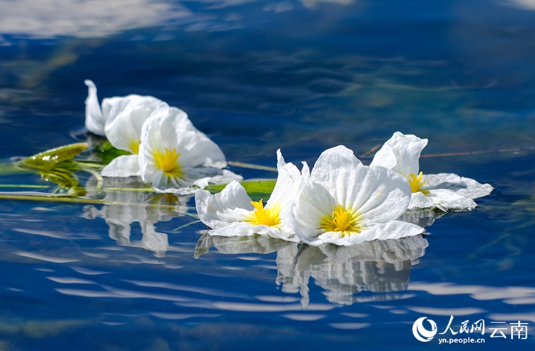 ในวันที่อากาศแจ่มใส ท้องฟ้าสีครามและเมฆสีขาวสะท้อนลงบนผืนน้ำอย่างสวยงาม ขณะที่ดอกว่านน้ำเม็ดน้อย ซึ่งขึ้นชื่อว่าเป็น “หินทดสอบคุณภาพน้ำ” เบ่งบานสะพรั่งเหนือทะเลสาบ ความแตกต่างระหว่างดอกสีขาวและผืนน้ำสีฟ้า ช่วยขับเน้นเสน่ห์ทางนิเวศวิทยาของทะเลสาบ
