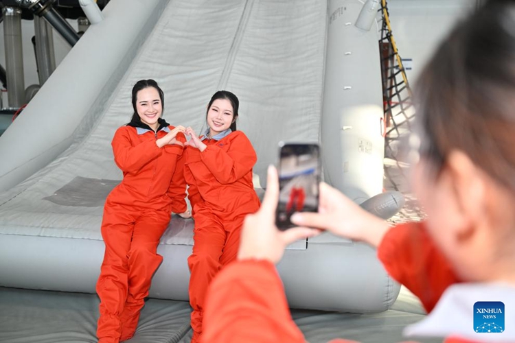 | ชื่อ จวง (ด้านซ้าย) อาจารย์ชาวจีนกำลังสอนนักศึกษาฝึกหัดพนักงานต้อนรับบนเครื่องบินจากประเทศไทย เกี่ยวกับความปลอดภัยในห้องโดยสารจำลอง ณ มหาวิทยาลัยการบินพลเรือนแห่งประเทศจีน (CAUC) ในเมืองเทียนจิน ทางตอนเหนือของประเทศจีน เมื่อวันที่ 20 มกราคม 2569 (ซินหัว) |